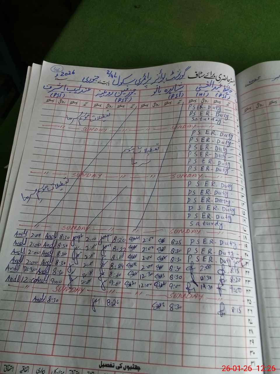 | Leave | Duty | Absent | Maternity | Medical | Ex- Pak |