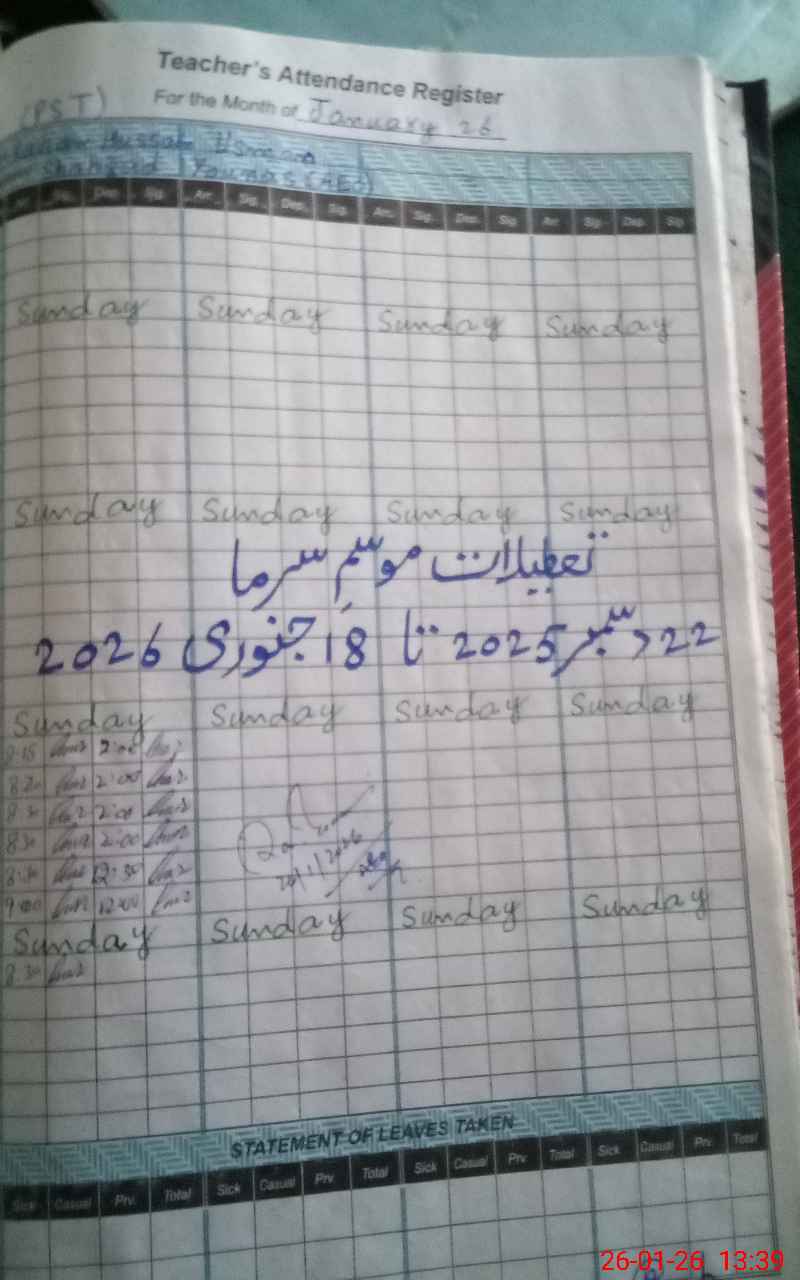 | Monitoring Date: 26-01-2026 | Start Time: 26-01-2026 01:32 PM | End Time: 26-01-2026 01:44 PM | Name of MEA: Za**** Ah**** | |