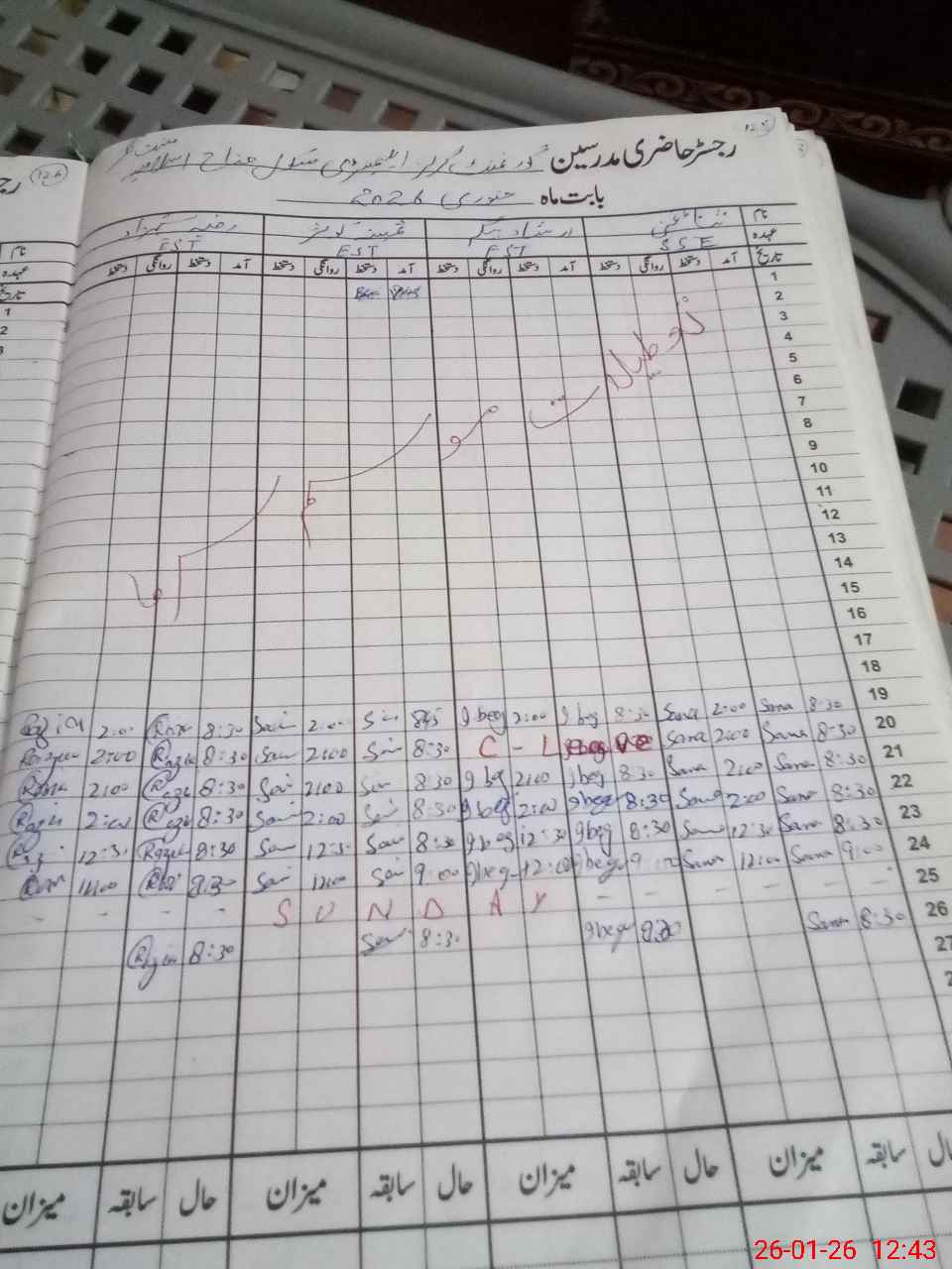 | CNIC | Full Name | Designation | R/C | Absence During Last Calender Month |