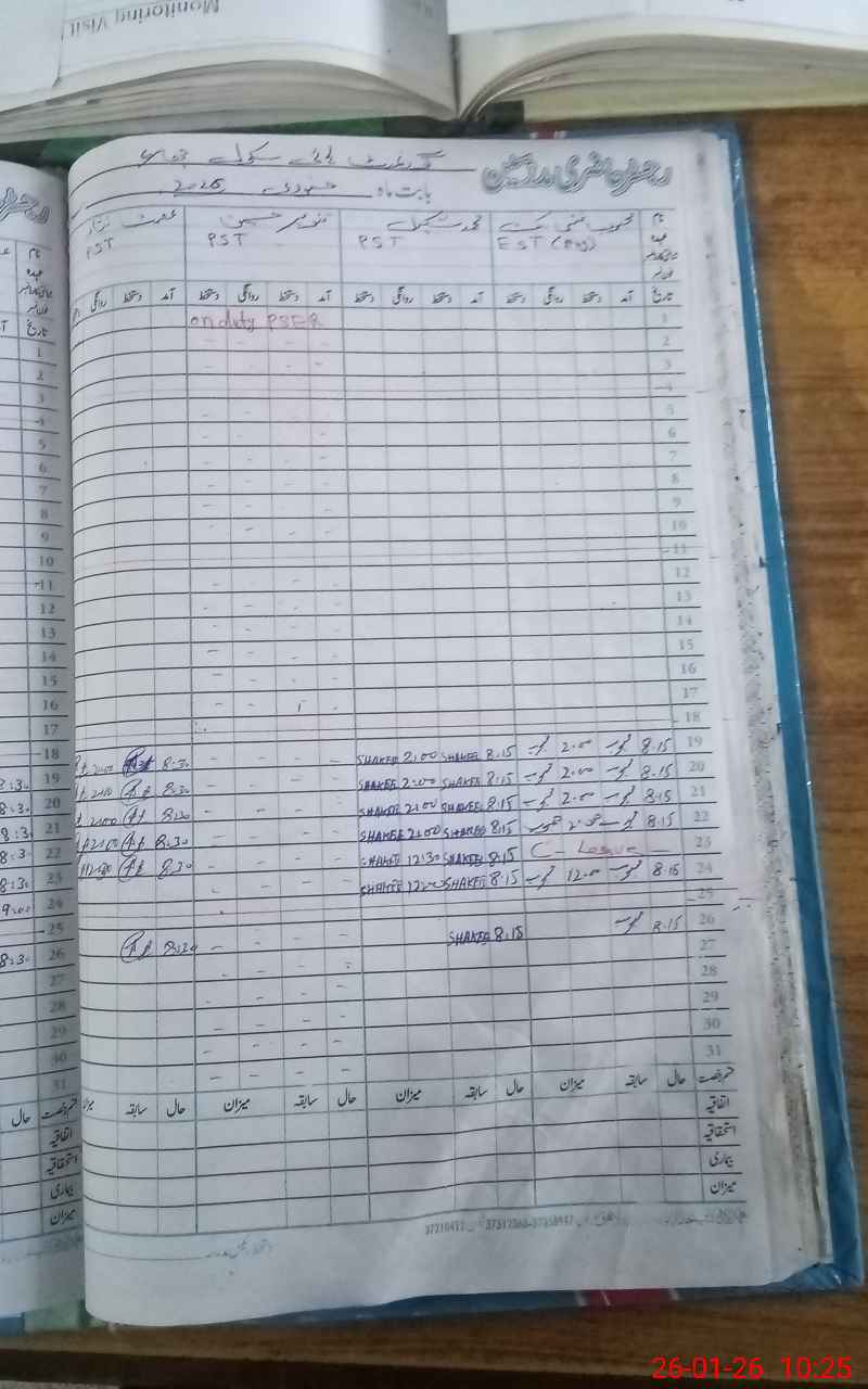 | CNIC | Full Name | Designation | R/C | Absence During Last Calender Month |