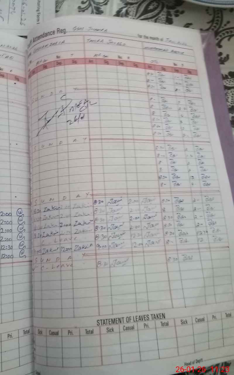 | 37**** | Gh**** Za**** | EST Urdu | Regular | 1 | 0 | 0 | 0 | 0 | 0 | 0 | 0 | 1 | Casual |