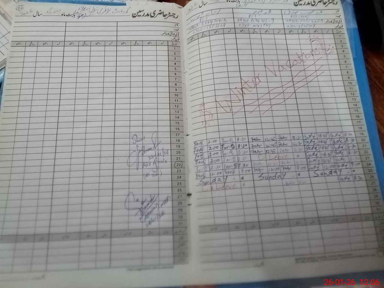 | CNIC | Full Name | Designation | R/C | Absence During Last Calender Month |
