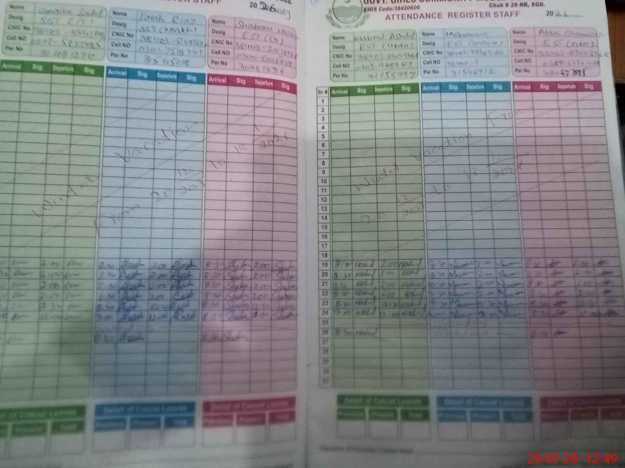 | CNIC | Full Name | Designation | R/C | Absence During Last Calender Month |