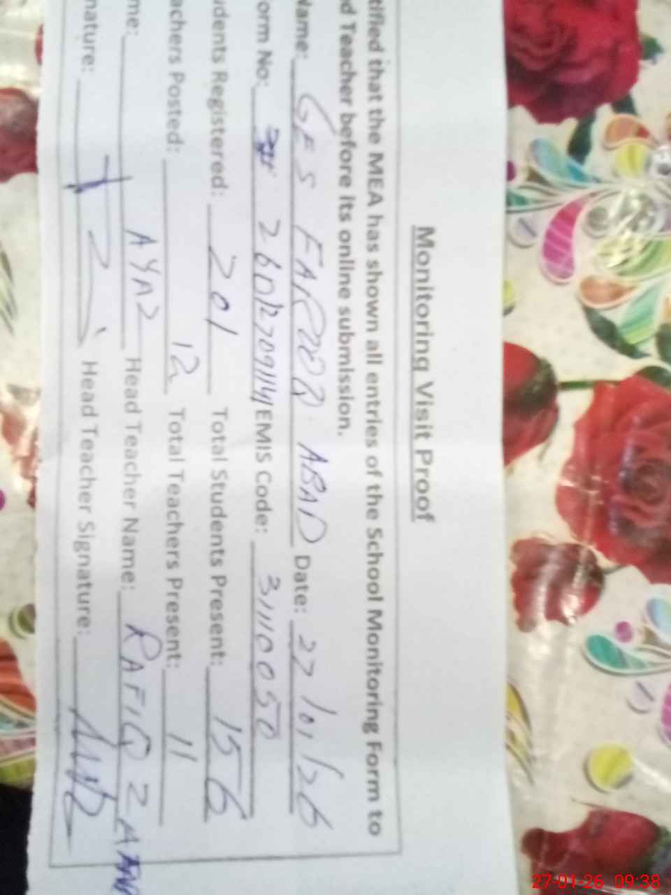 | EMIS Code: 31110050 | Name of School: GES FAROOQ ABAD | |||