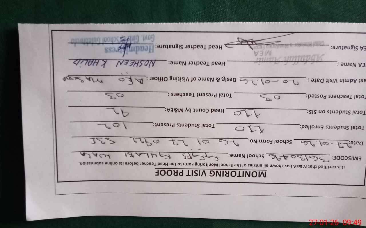 | Attendance Register | Head Teacher | MEA with School | Visit Proof |