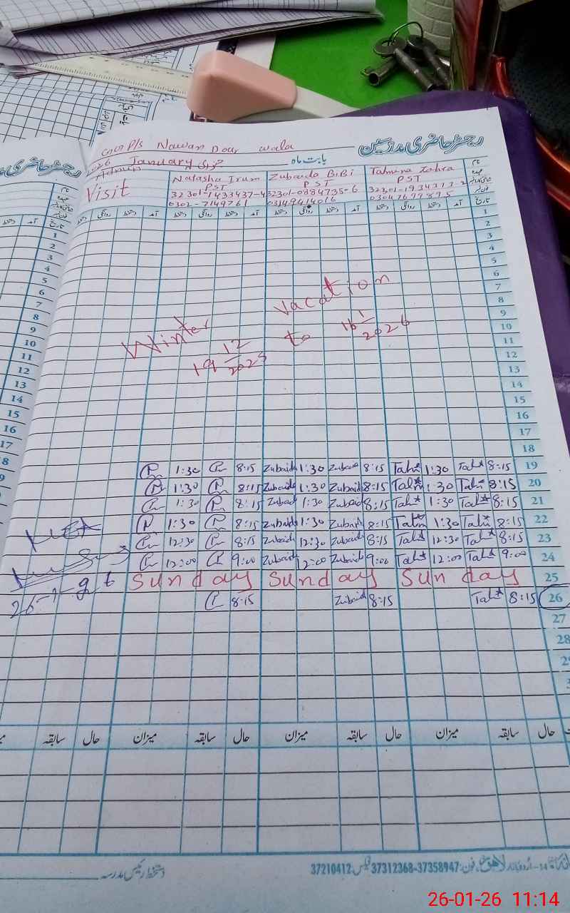 | Name: Zu**** Bi**** Designation: (School Headmaster's/Headmistress's) PST Phone/Cell Number: 03**** |