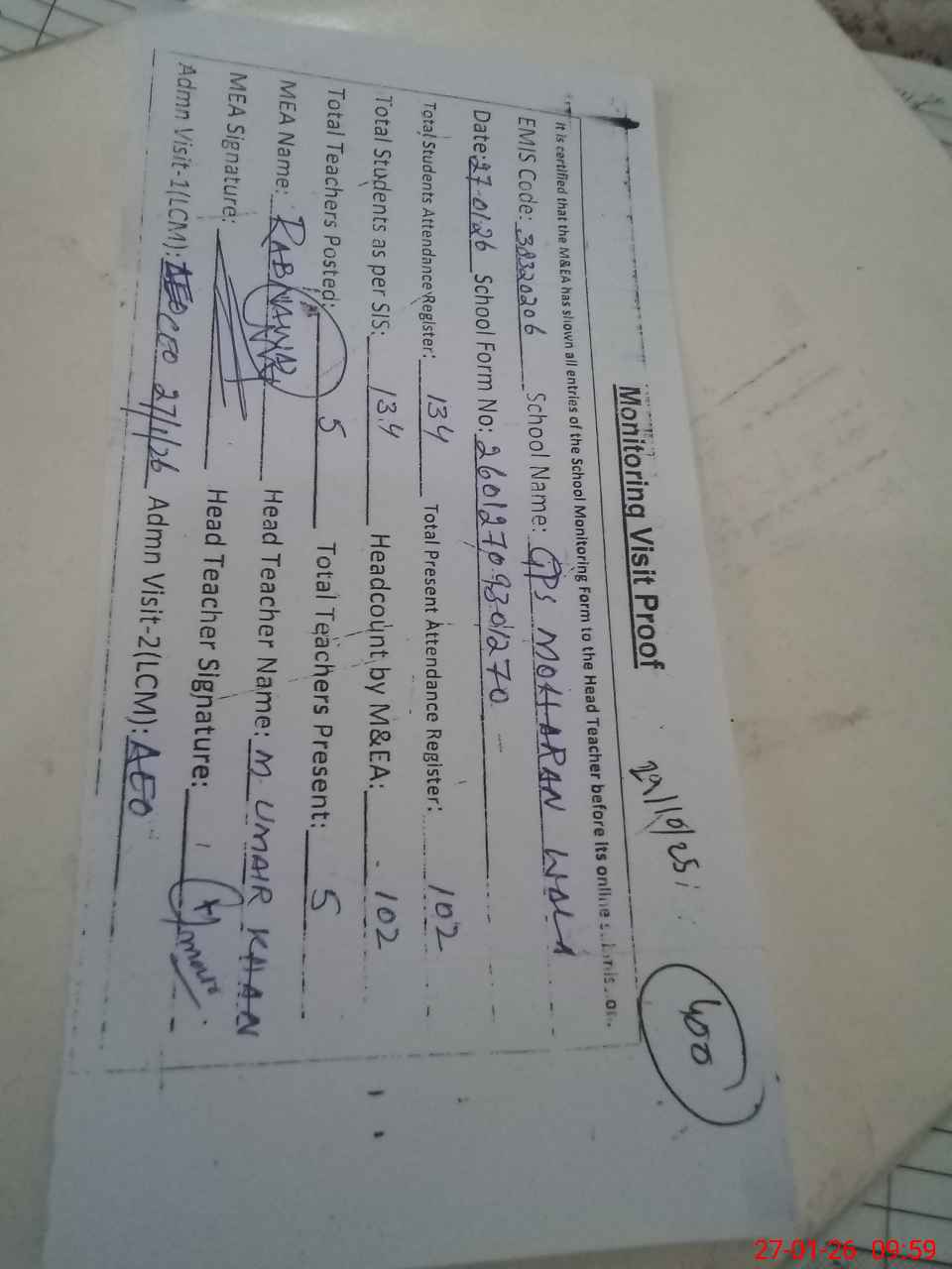 | EMIS Code: 38320206 | Name of School: GPS MOHARAN WALA | |||