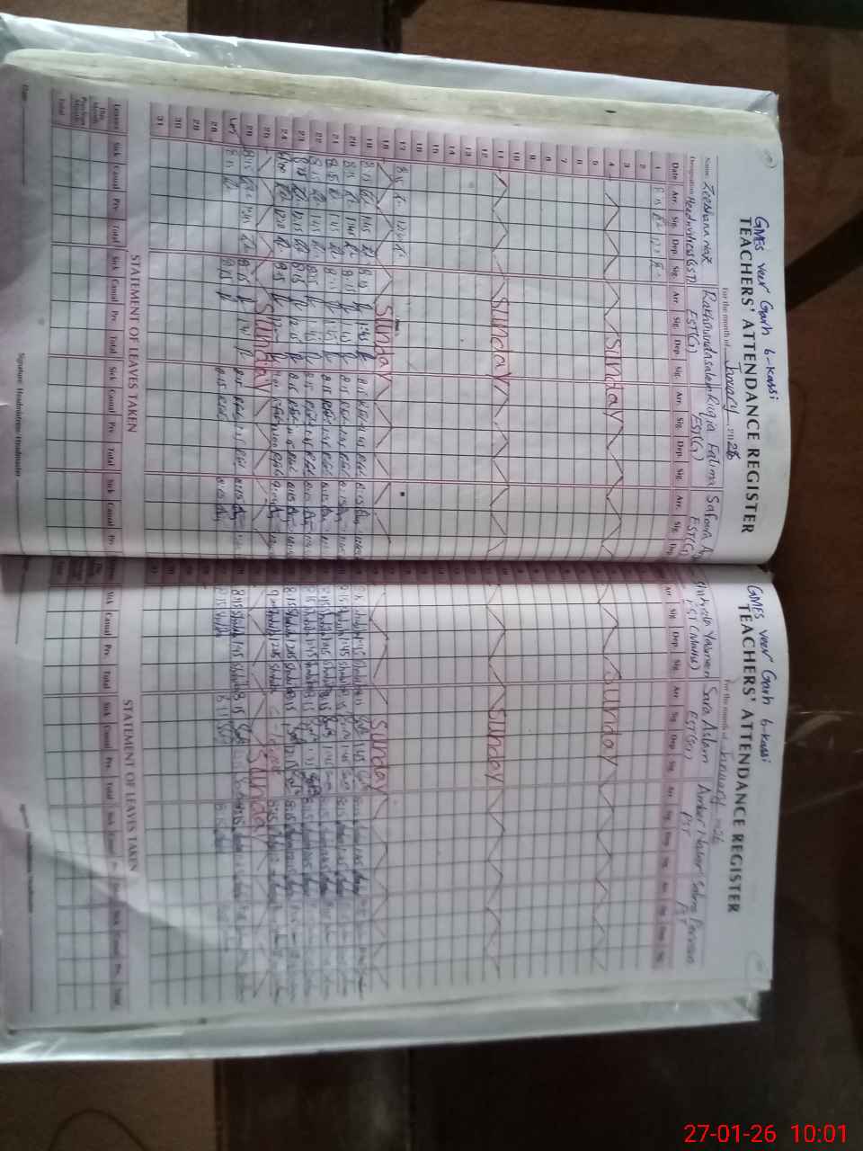 | Leave | Duty | Absent | Maternity | Medical | Ex- Pak |