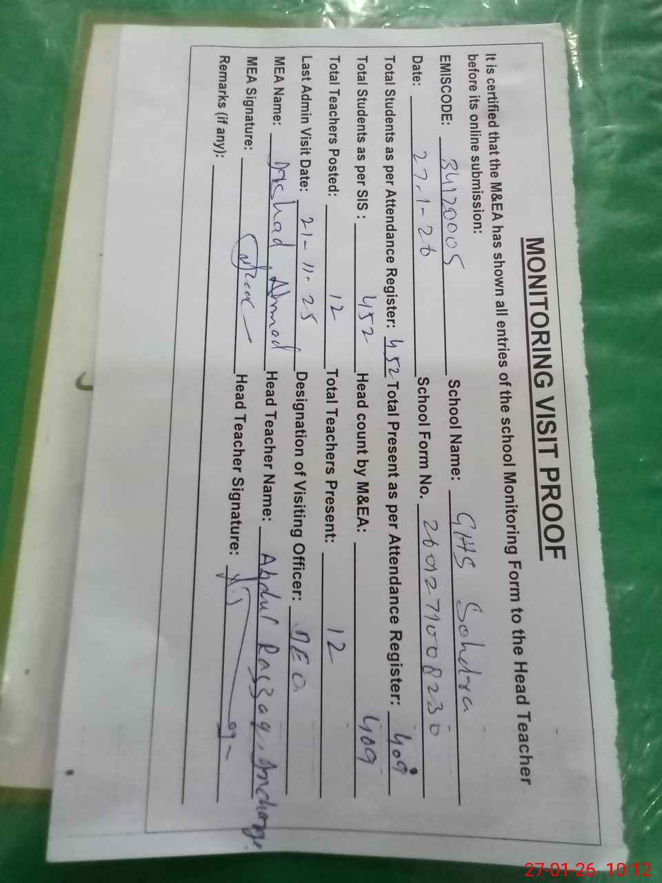 | EMIS Code: 34120005 | Name of School: GHS SOHDRA | |||
