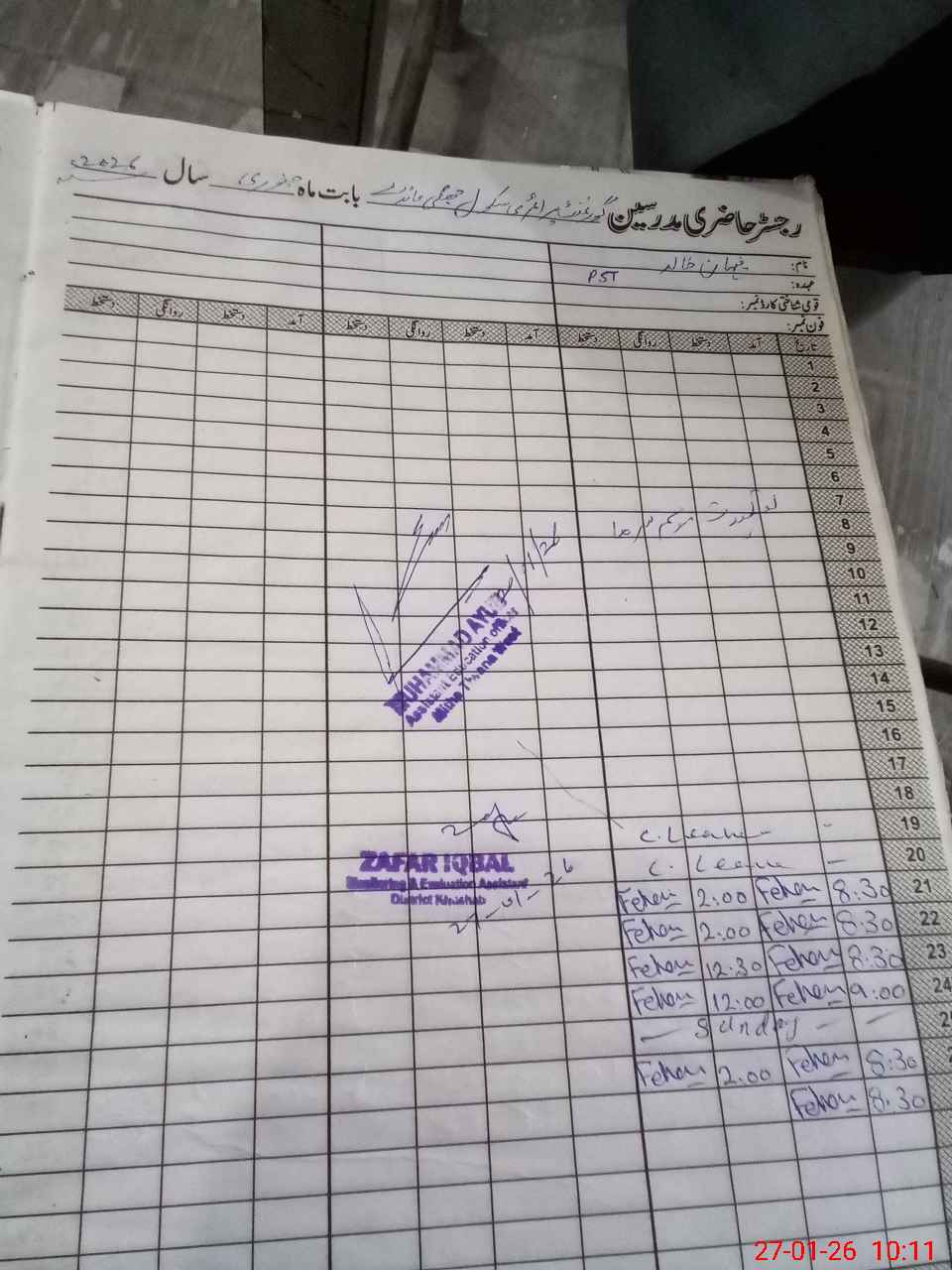 | Name: AB**** JA**** Designation: (School Headmaster's/Headmistress's) PST Phone/Cell Number: 03**** |