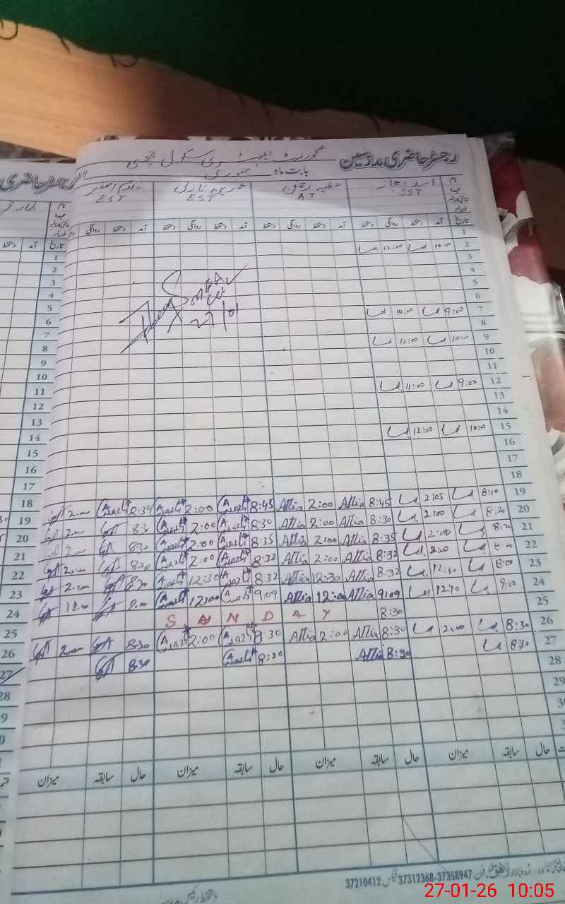 | Name: As**** Ij**** Designation: (School Headmaster's/Headmistress's) Sst Phone/Cell Number: 03**** |