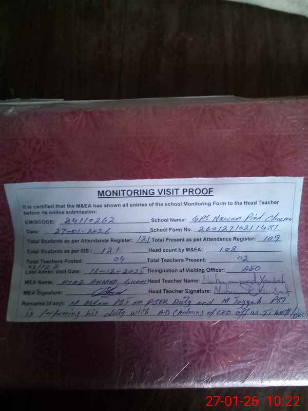 | EMIS Code: 34110262 | Name of School: GPS NAWAN PIND CHEEMA | |||