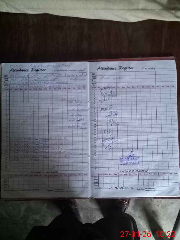 | Remarks (Use Separate Page if Required): Attendance of teaching staff and students on SIS Software is not updated Muhammad Aslam PST is on PSER Duty Muhammad Tayyab PST is performing his duty with AD (Admin) of CEO DEA Gujranwala Office as IT Assistant/ Data Entry Operator vide CEO DEA Gujranwala Office Order No 4427 dated 21 September 2024 Data as per provided by School Staff and found during physical visit | |||||