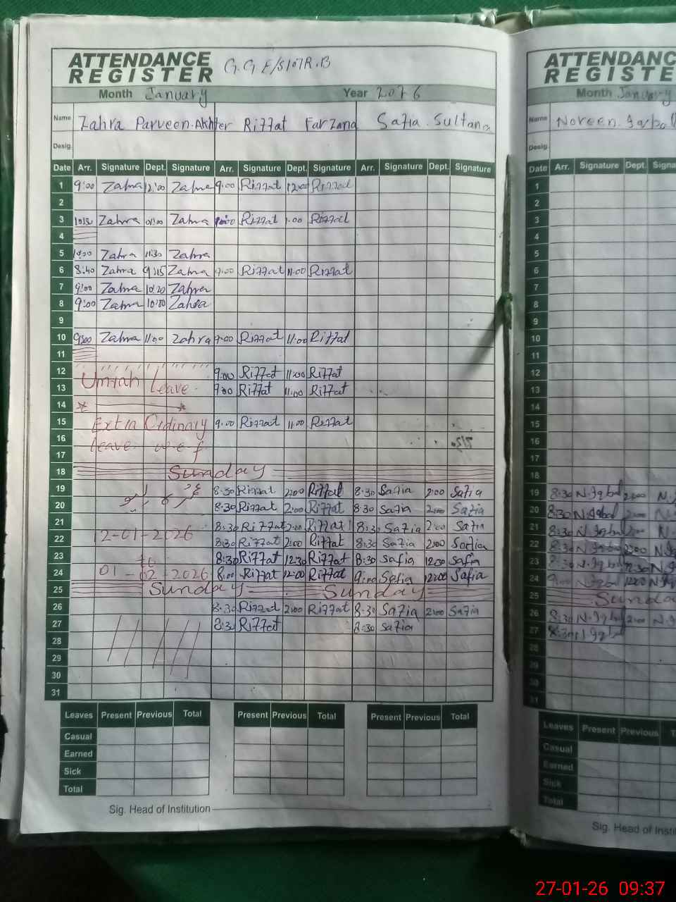 | Leave | Duty | Absent | Maternity | Medical | Ex- Pak |
