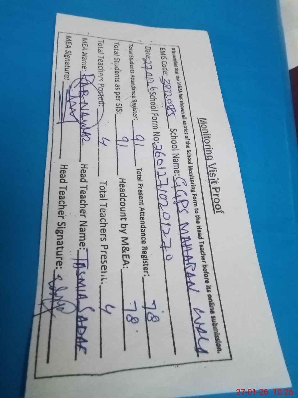 | EMIS Code: 38320585 | Name of School: GGPS MAHARAN WALA | |||