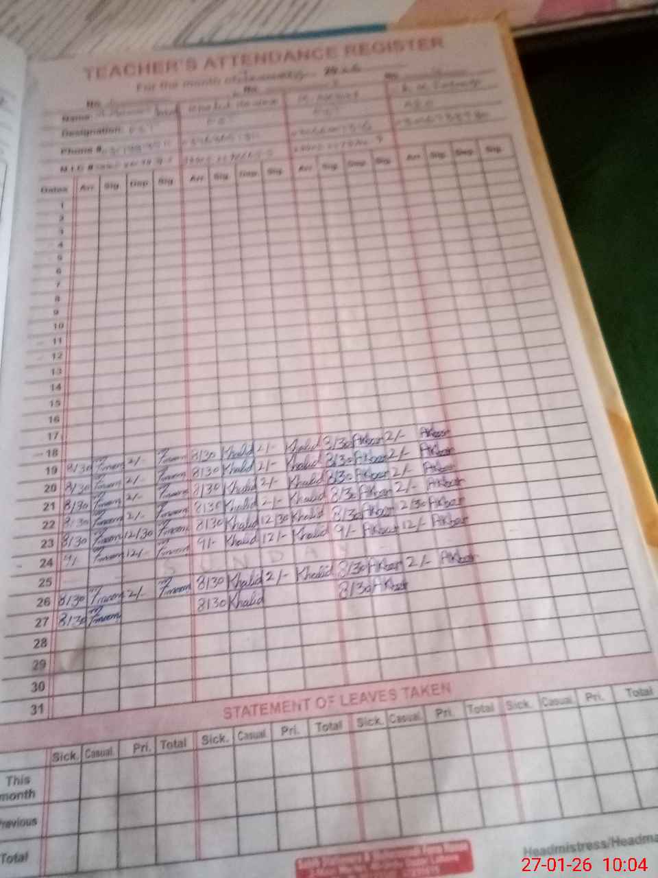 | Name: Mu**** Ma**** Iq**** Designation: (School Headmaster's/Headmistress's) PTC/JV Phone/Cell Number: 03**** |