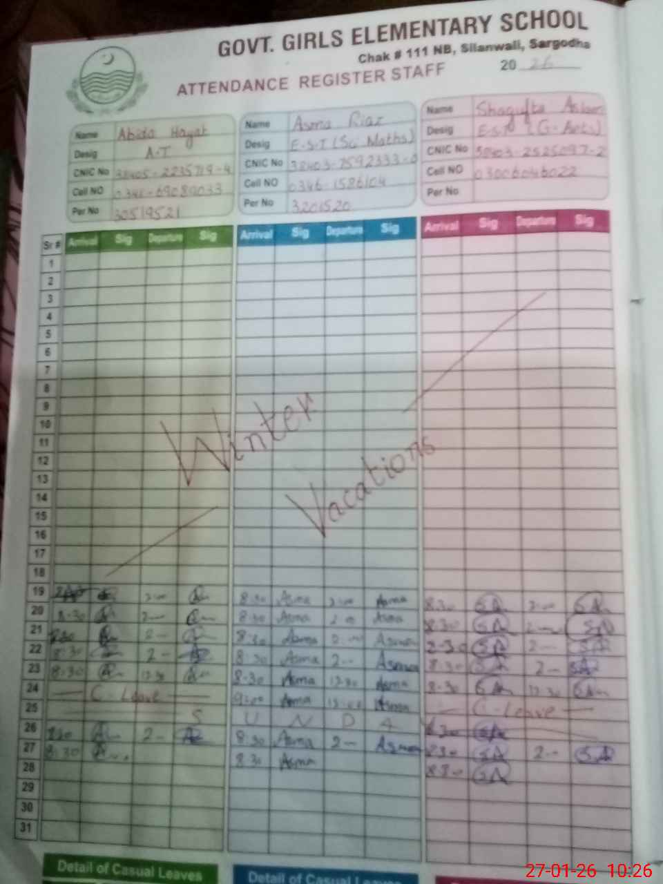 | Name: Sy**** AFI**** SH**** Designation: (School Headmaster's/Headmistress's) SST (Arts) Phone/Cell Number: 03**** |