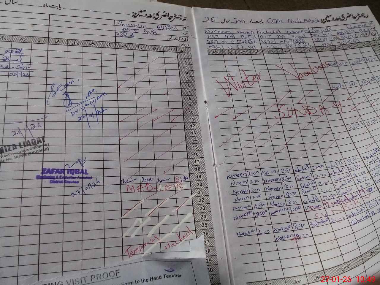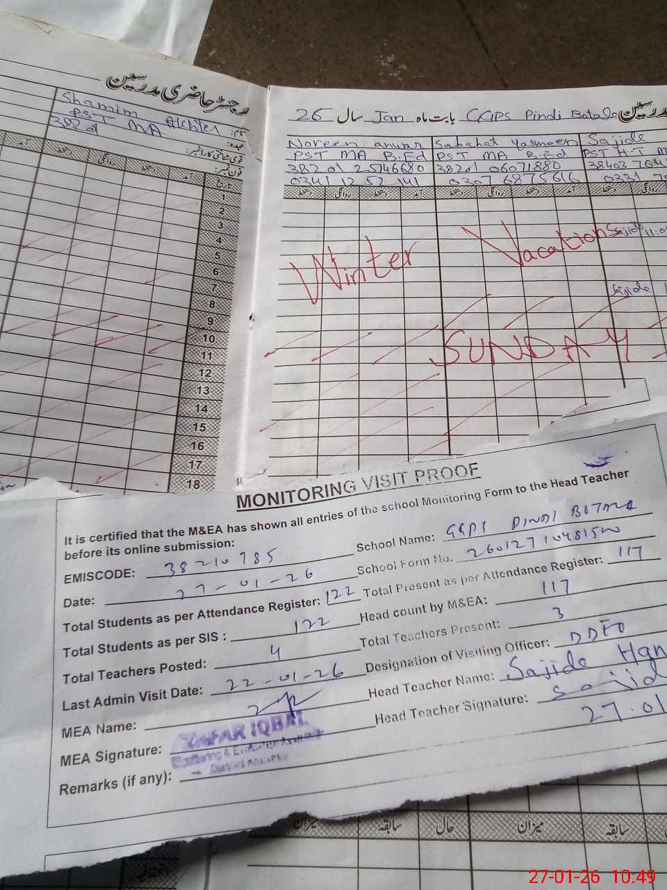 | Attendance Register | Head Teacher | MEA with School | Visit Proof |