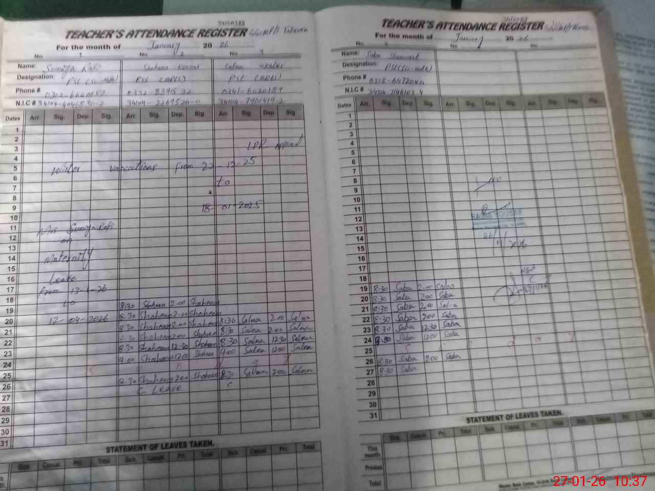 | Name: SA**** RA**** Designation: (School Headmaster's/Headmistress's) PST/PTC/JV Phone/Cell Number: 03**** |