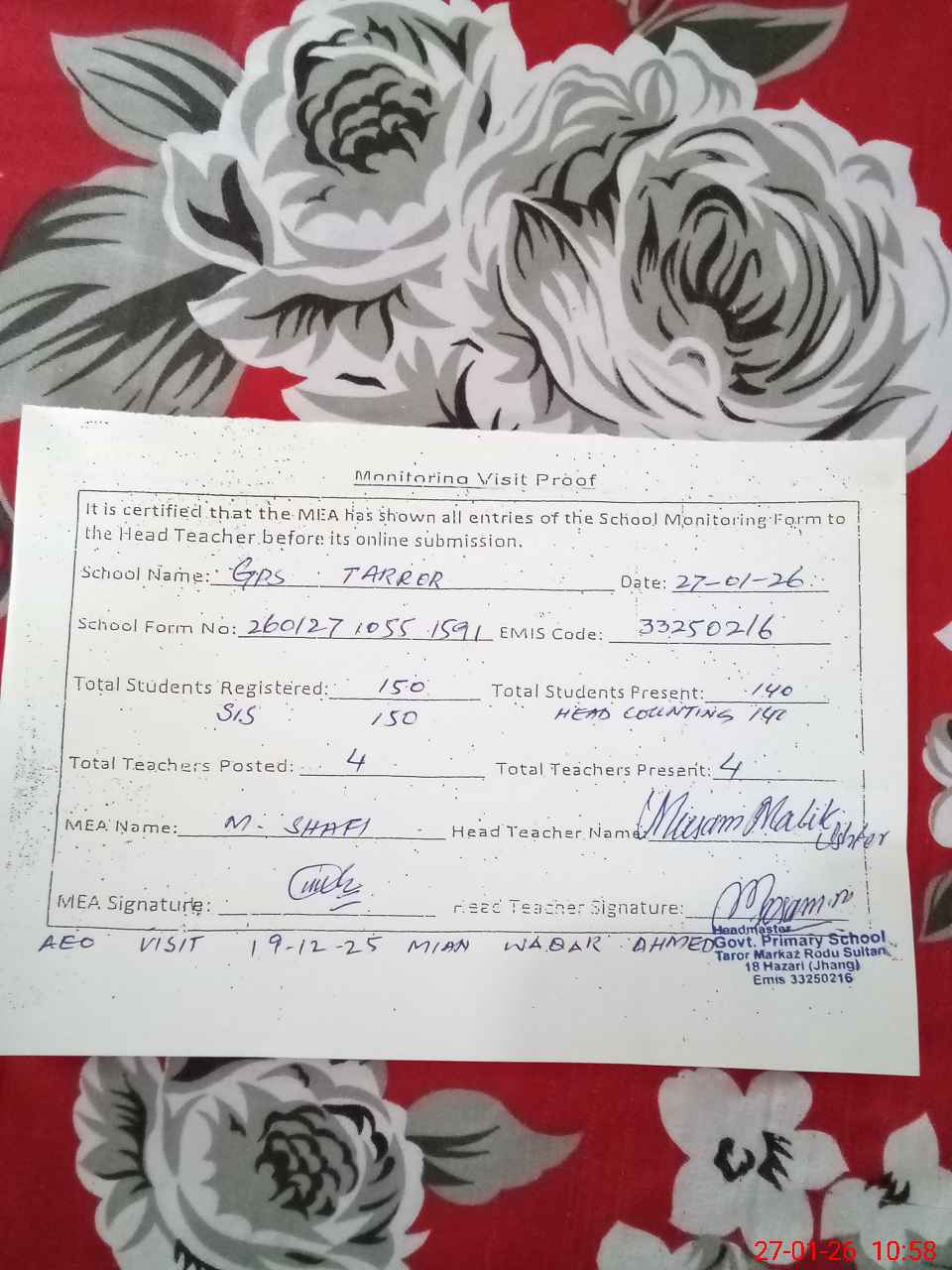 | EMIS Code: 33250216 | Name of School: GPS TARROR | |||