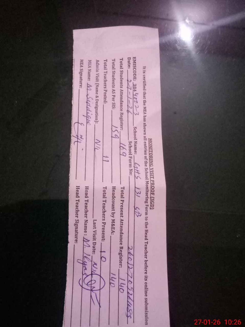 | EMIS Code: 38440023 | Name of School: GHS CHAK NO.131 SB | |||