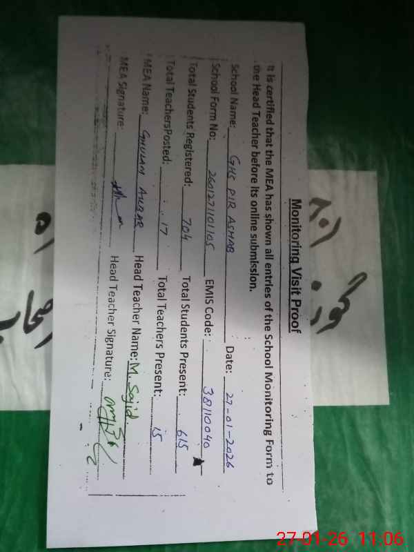 | EMIS Code: 38110040 | Name of School: GHS PIR ASHAB | |||