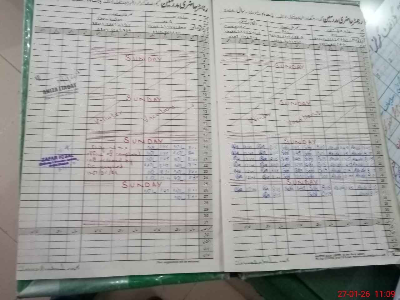 | CNIC | Full Name | Designation | R/C | Absence During Last Calender Month |
