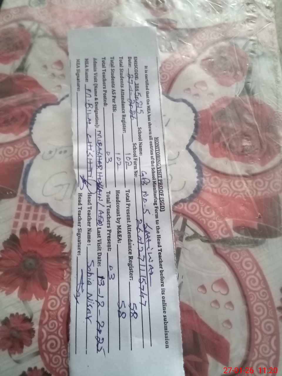 | EMIS Code: 38450215 | Name of School: GPS NO.5 SAHIWAL | |||