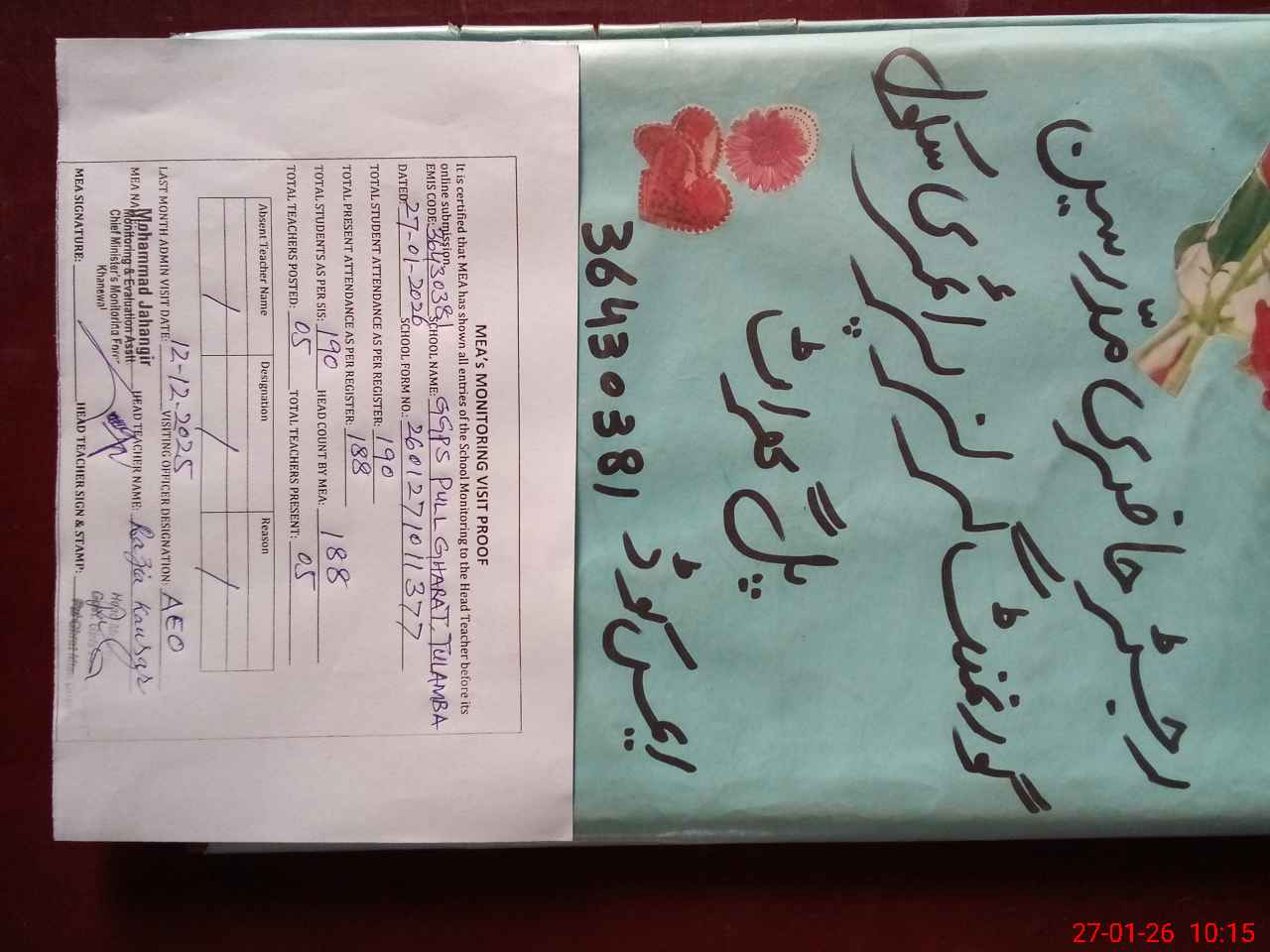 | EMIS Code: 36430381 | Name of School: GGPS PULL GHARAT, TULAMBA | |||