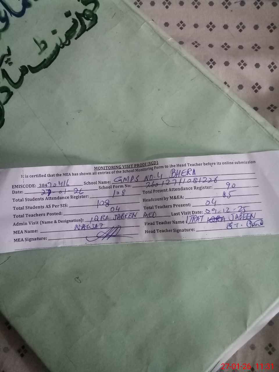 | EMIS Code: 38470416 | Name of School: GMPS NO.4 BHERA | |||
