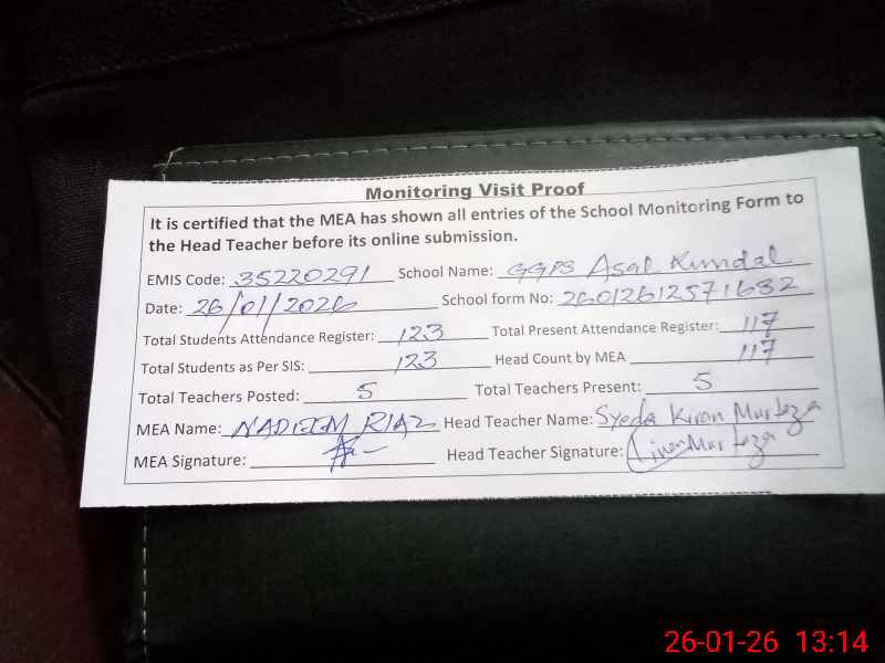 | EMIS Code: 35220291 | Name of School: GGPS ASAL KUNDAL | |||