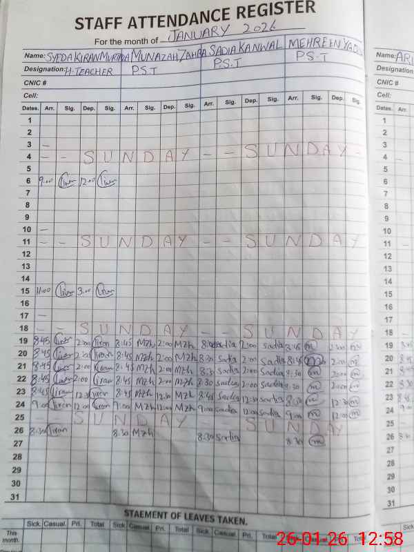 | Name: Sy**** Ki**** Mu**** Designation: (School Headmaster's/Headmistress's) Head Mistress Phone/Cell Number: 03**** |