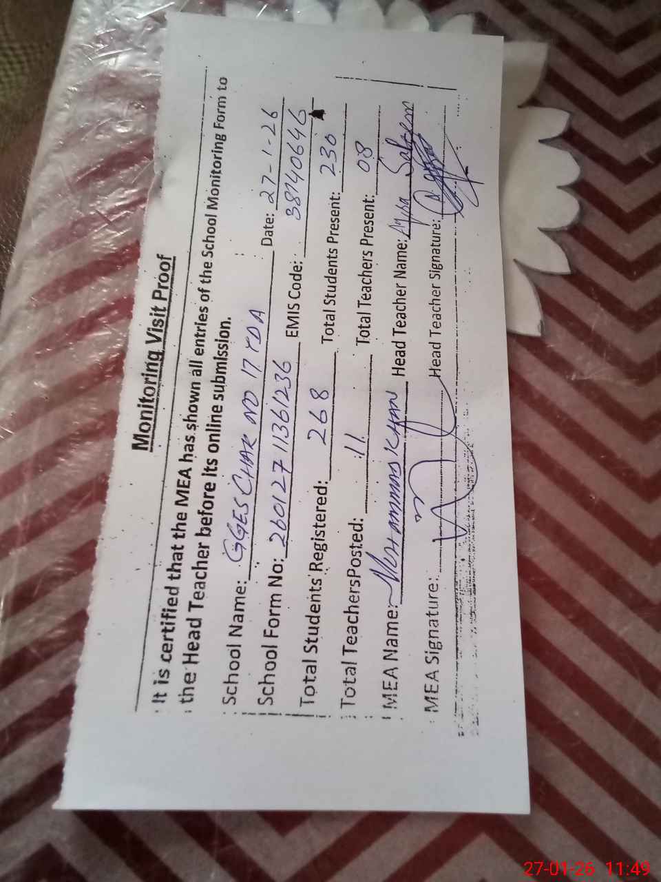 | EMIS Code: 38140646 | Name of School: GGES CHAK NO.17/TDA | |||