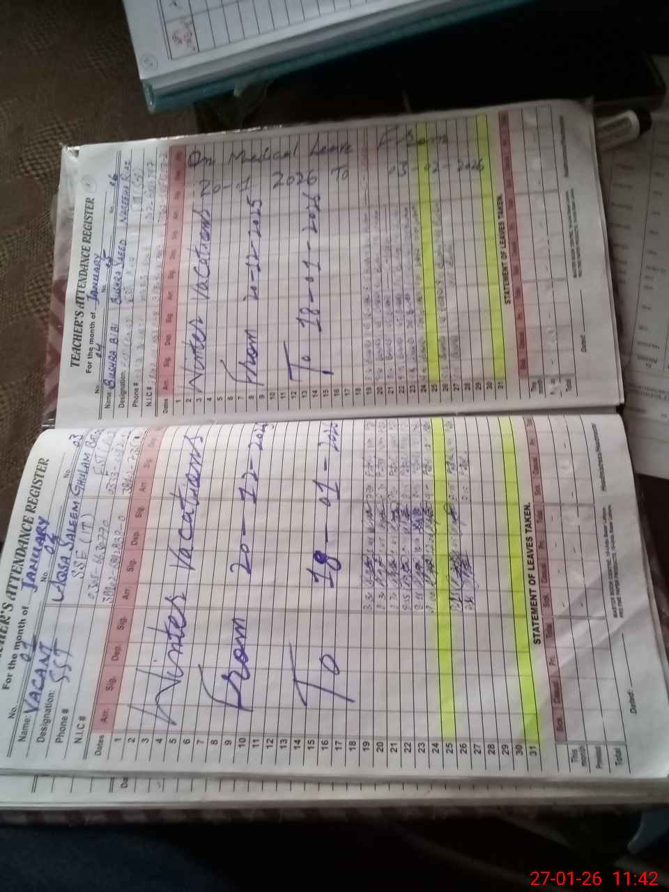 | 38**** | Af**** Fa**** | PST Science/Maths | Regular | 0 | 0 | 0 | 0 | 0 | 0 | 0 | 0 | 0 | Absent (Un-Authorized) |