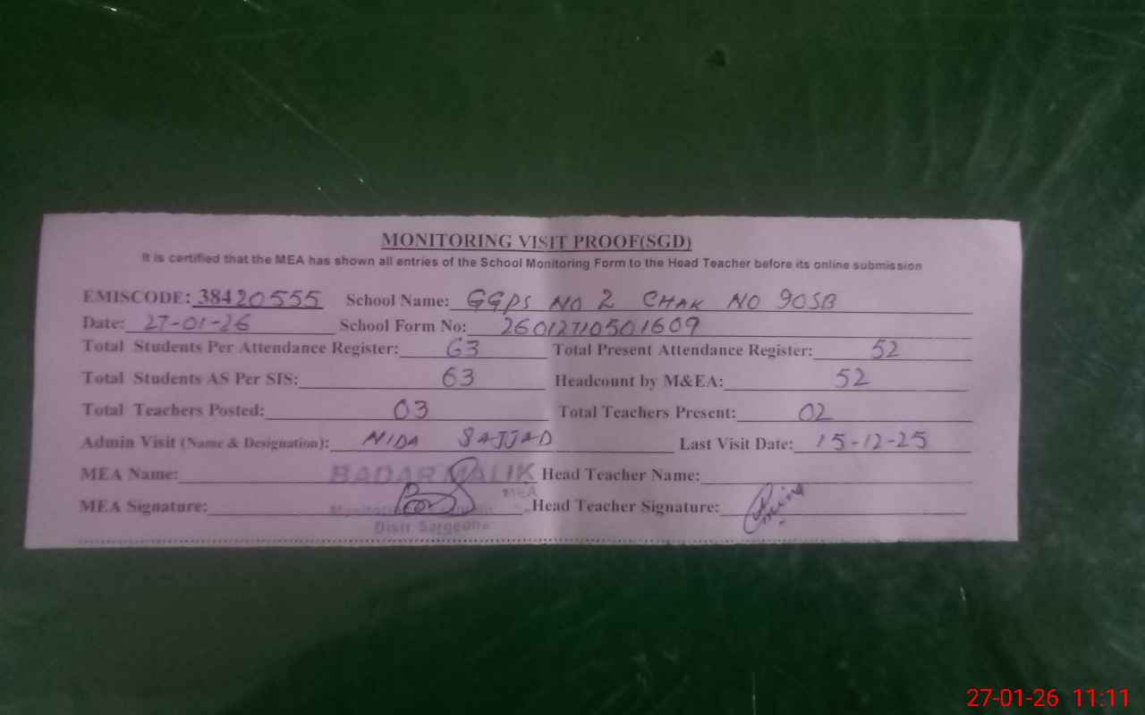 | EMIS Code: 38420555 | Name of School: GGPS NO.2 CHAK NO.90 SB | |||