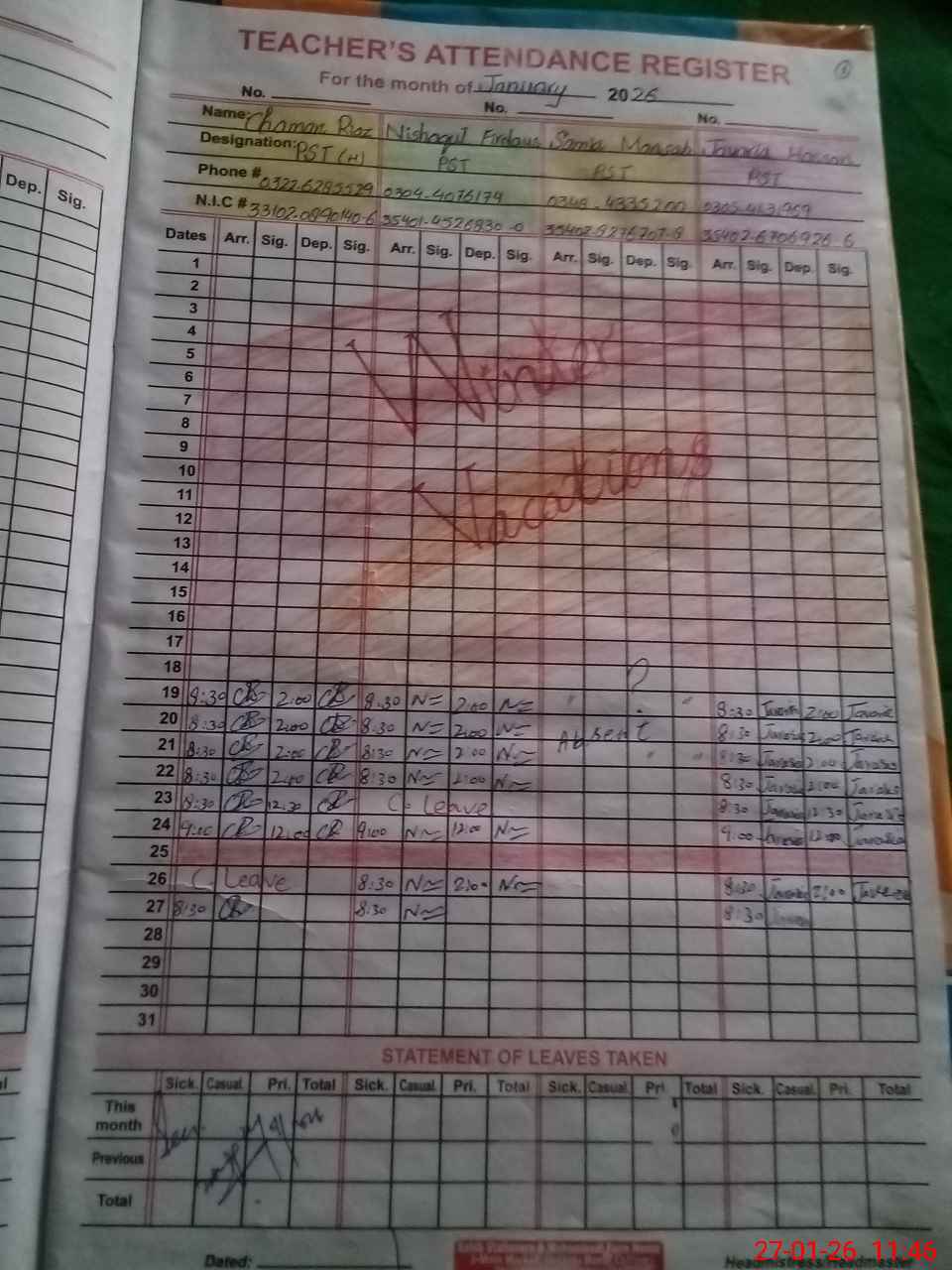 | 35**** | Sa**** Ma**** | PST Arts | Regular | 0 | 0 | 0 | 0 | 0 | 0 | 0 | 0 | 0 | Absent (Un-Authorized) |
