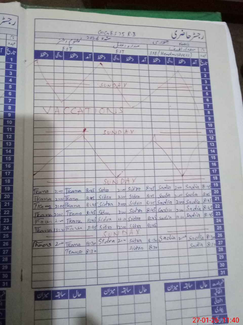 | CNIC | Full Name | Designation | R/C | Absence During Last Calender Month |