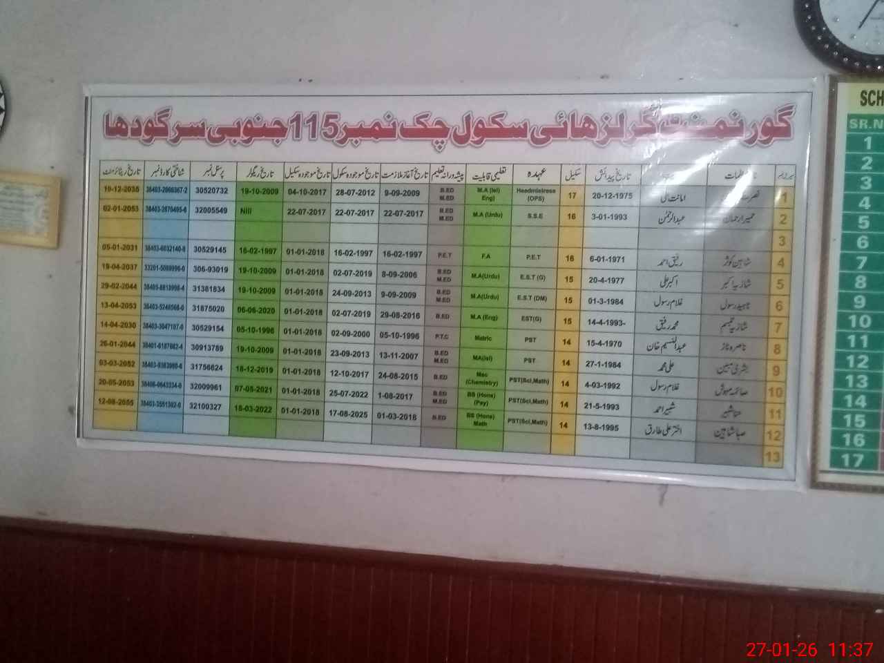 | EMIS Code: 38420147 | Name of School: GGHS CHAK NO.115 SB | |||