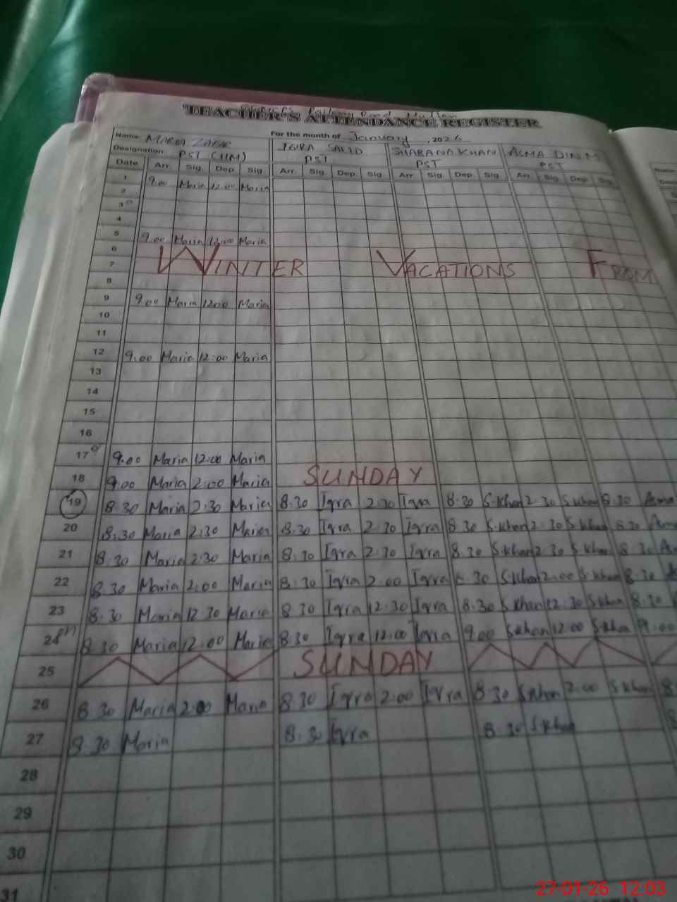 | Monitoring Date: 27-01-2026 | Start Time: 27-01-2026 11:53 AM | End Time: 27-01-2026 12:08 PM | Name of MEA: MU**** AK**** KH**** | |
