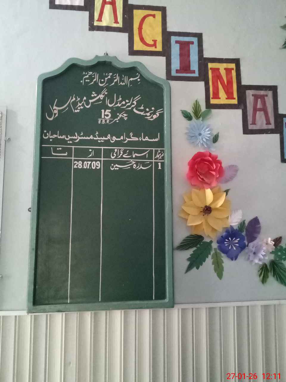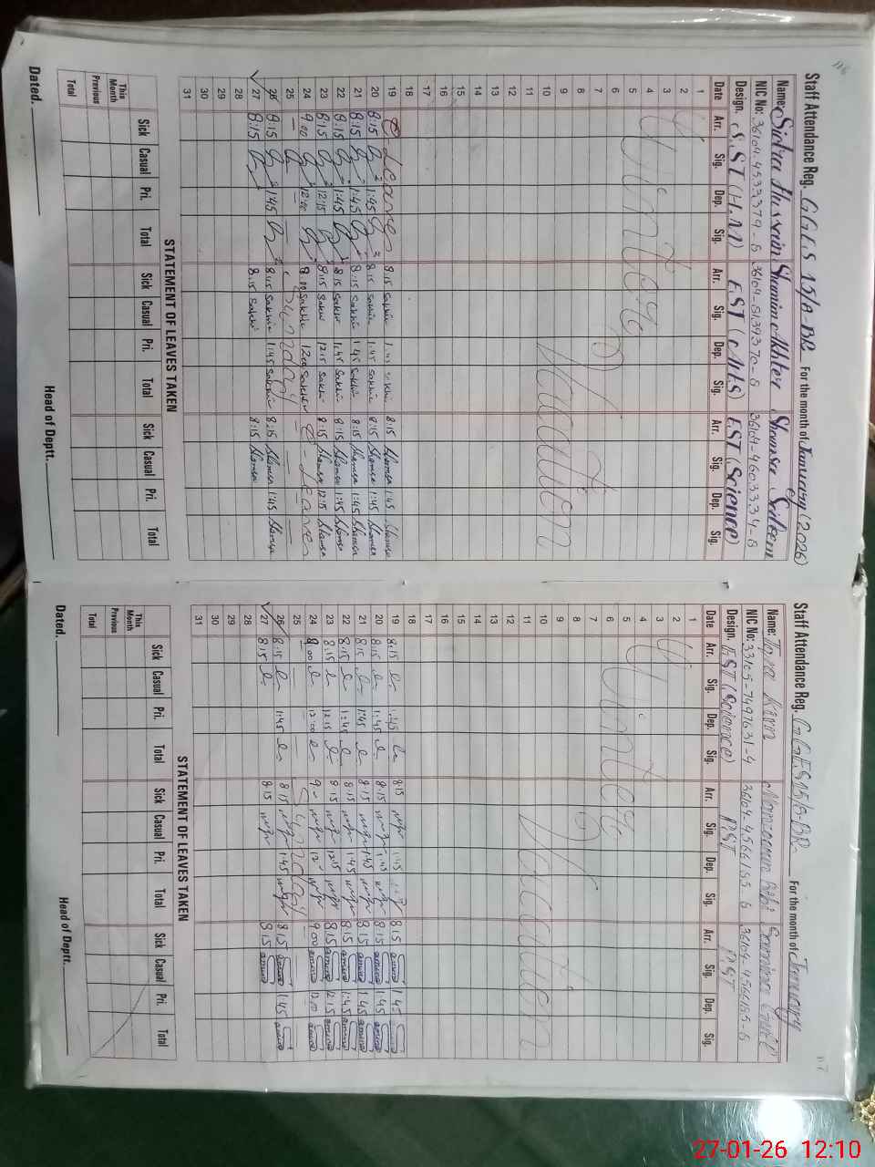 | Name: SI**** HU**** Designation: (School Headmaster's/Headmistress's) S.S.T.(general) Phone/Cell Number: 03**** |