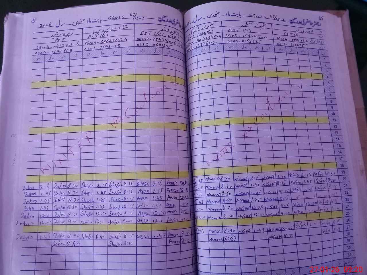 | 36**** | Aa**** Na**** | SST Science | Regular | 2 | 0 | 0 | 0 | 0 | 0 | 0 | 0 | 2 | Casual |