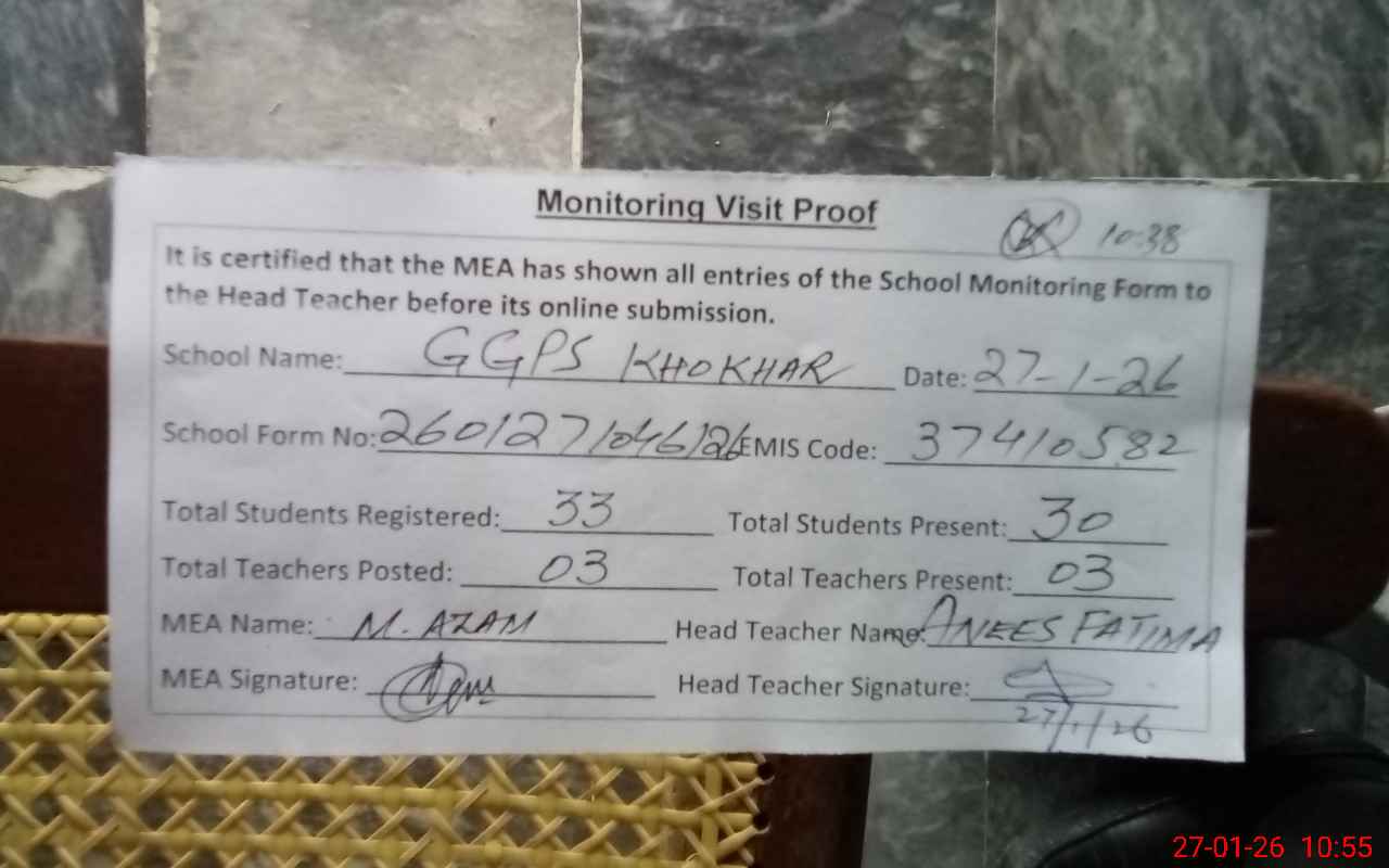 | EMIS Code: 37410582 | Name of School: GGPS KHOKAR PO NICHANDI CHAKWAL | |||