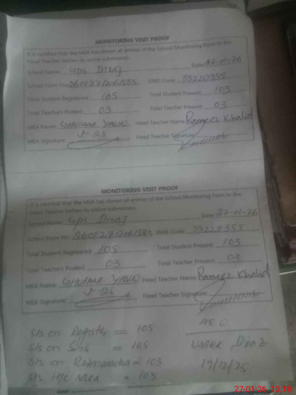 | EMIS Code: 33220355 | Name of School: GPS DIRAJ | |||