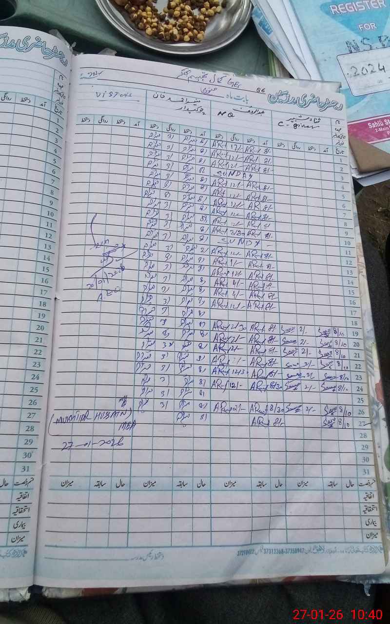 | CNIC | Full Name | Designation | R/C | Absence During Last Calender Month |