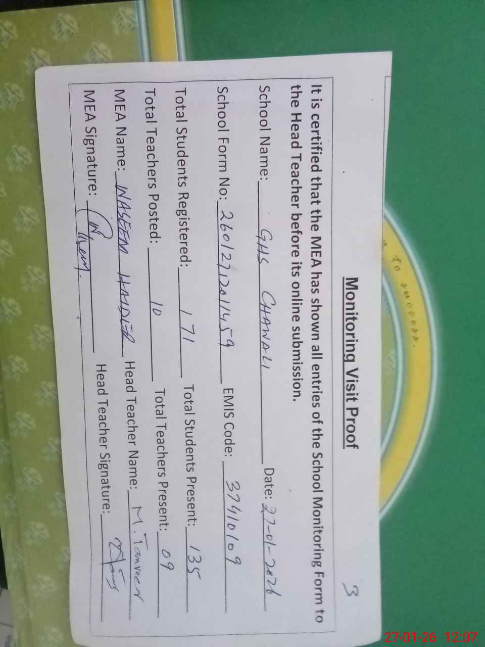 | EMIS Code: 37410109 | Name of School: GHS CHAWALI | |||
