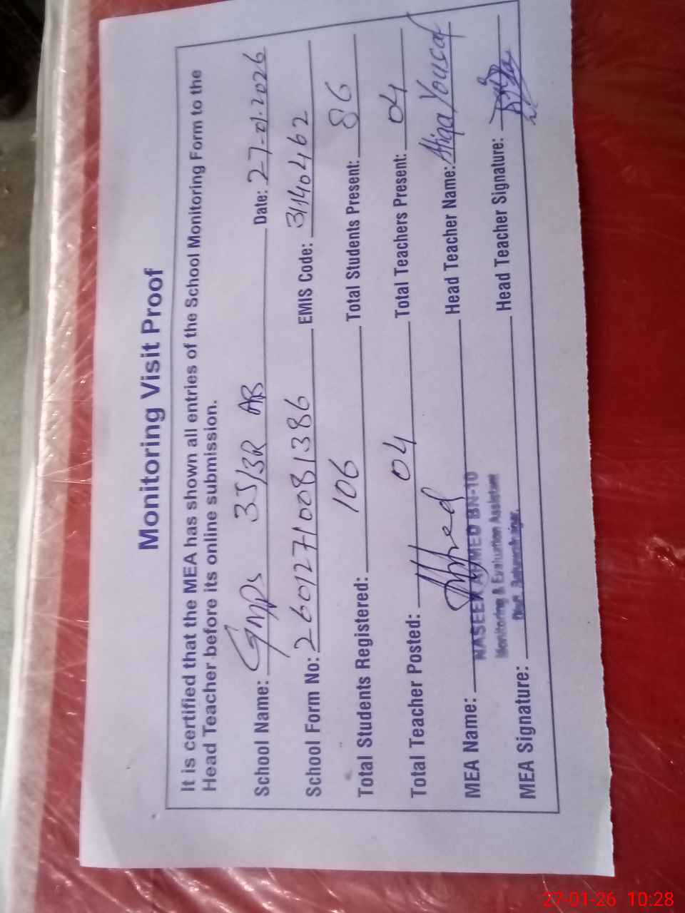 | EMIS Code: 31140462 | Name of School: GMPS CHAK NO 35/3-R AB | |||