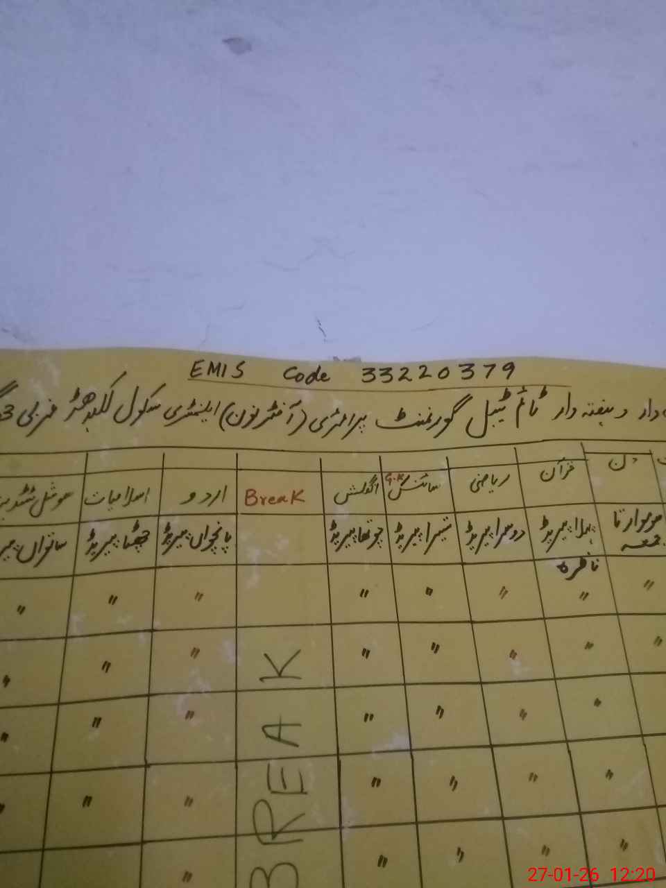 | EMIS Code: 33220379 | Name of School: GPS LAK BADHAR WEST | |||