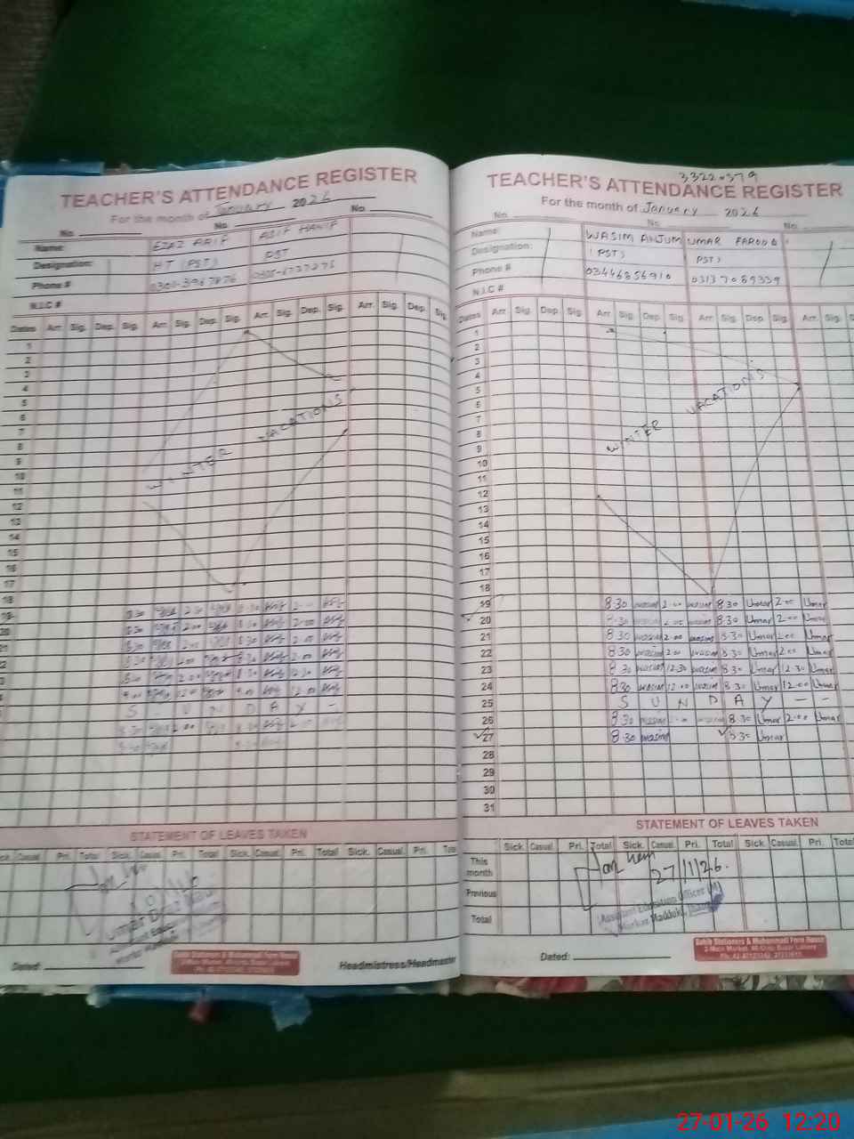 | Name: EZ**** AR**** Designation: (School Headmaster's/Headmistress's) PST Phone/Cell Number: 03**** |