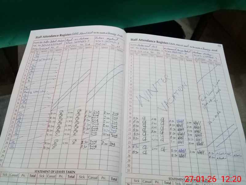 | CNIC | Full Name | Designation | R/C | Absence During Last Calender Month |