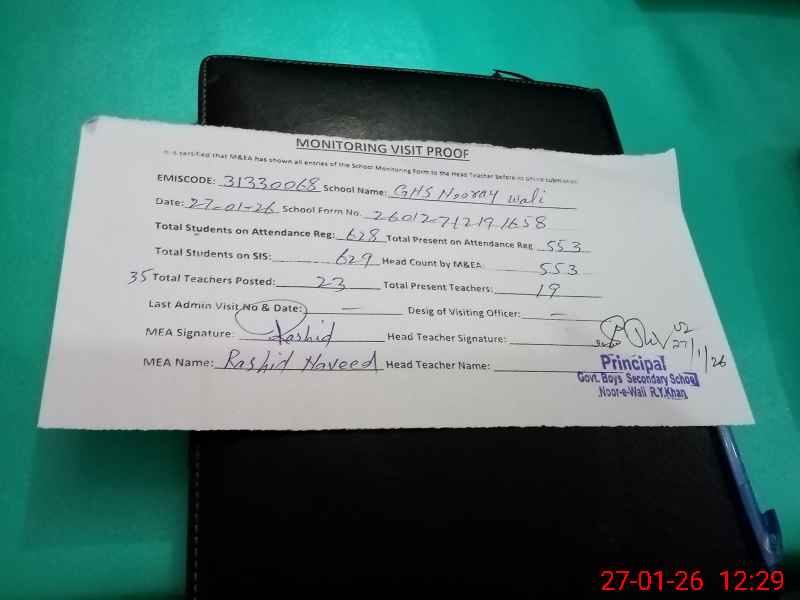 | EMIS Code: 31330068 | Name of School: GHS NOORAY WALI | |||